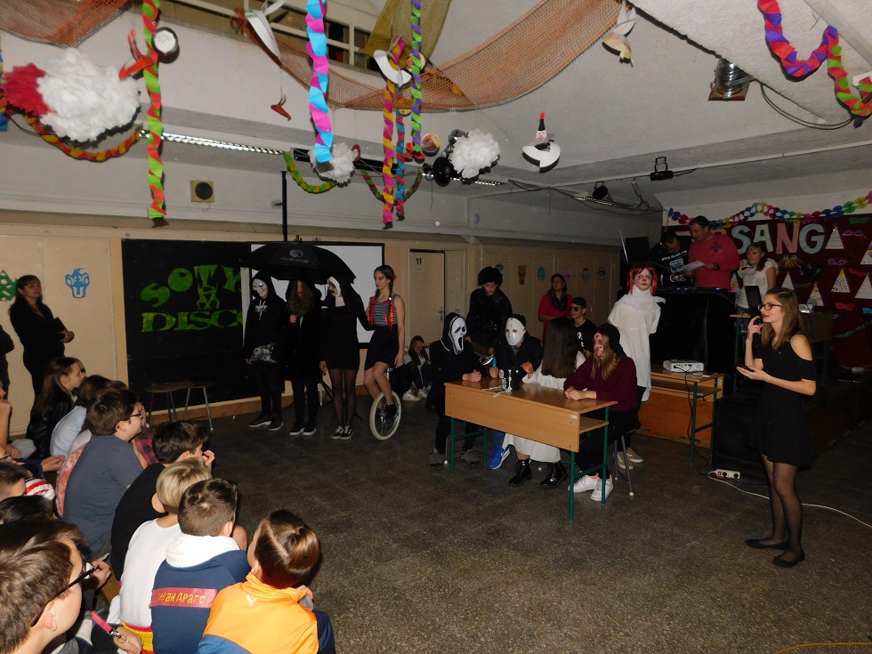 Hagyomány minden év februárjában a farsangolás az iskolában. A felső tagozatosok farsangja idén február 2-án délután került megrendezésre. Az osztályok a filmek világából szemezgettek. Különböző műfajú filmek szereplői keltek életre, jelenetei idéződtek fel a produkciók során. További hagyományos programok szinesítették a karneváli hangulatot. Casino, jósda, házasságkötés, szellemterem várta a diákokat, aminek előkészületeiben és lebonyolításában a volt tanulóink lelkesen vettek részt. Nem maradt el az eszem-iszom, dínom-dánom, disco-tánc sem. Ezúton köszönjük a büféhez a szülői felajánlásokat és a hetedik évfolyamos tanulók szüleinek a büfé üzemeltetését. Fantasztikus hangulatban zártuk a mulatságot!