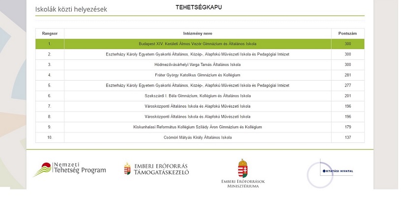 Iskolánk részt vesz a Tehetségkapu programban. Regisztrálásuk után a tanulóink online tehetségpróbán mérhették fel képességeiket. Országos szinten intézményünk az első lett. Csapatban iskolai szinten 8. a osztály lány csapata és a 3.b lett a legjobb. Felkészítők: Drechsler Mónika és Papp Tamás. A tehetségazonosítás folytatásaként a 4.b osztály 15 tanulója oldott meg a tehetségkapu honlapján matematika feladatokat. Értékelésüket egyénileg kapták meg.