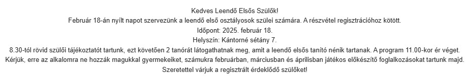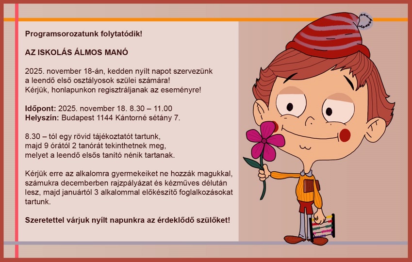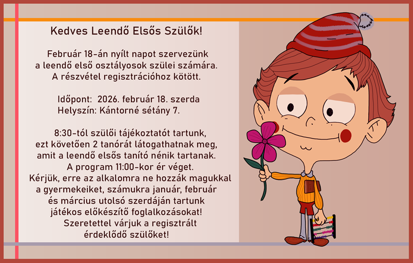 A nagy érdeklődésre való tekintettel 2022. november 7-én 17 órától is tartunk szülői tájékoztatót.