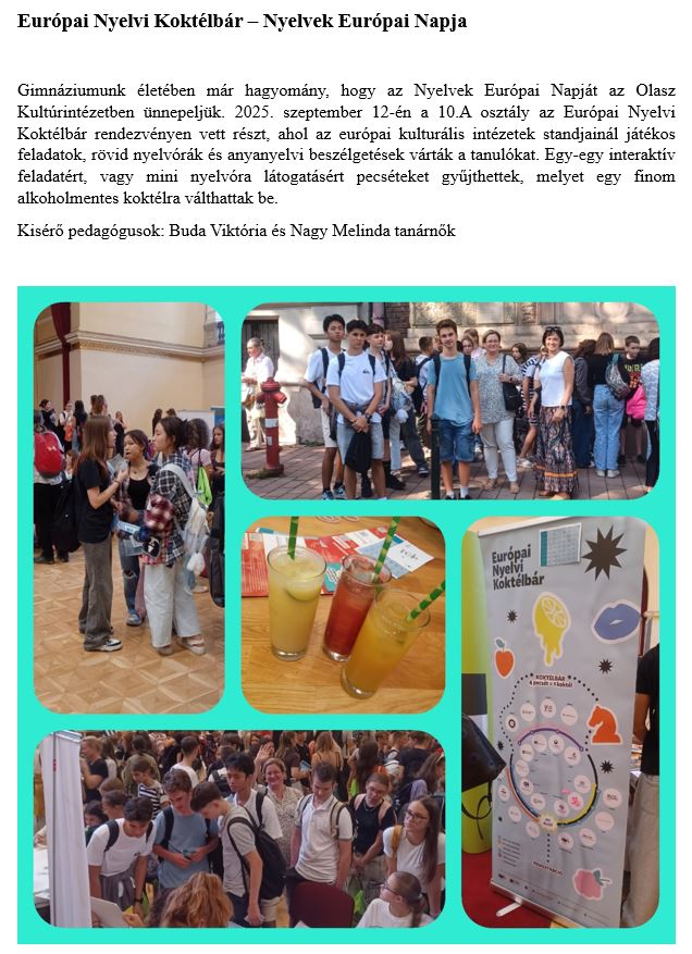 Minden nyílt nap reggel 8 órakor szülői tájékoztatóval indul, ezek után 2 nyílt órán vehetnek részt a 8. osztályos diákok!